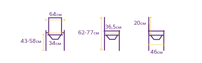 - высота — от 62 до 77 см, с шагом 2,5 см