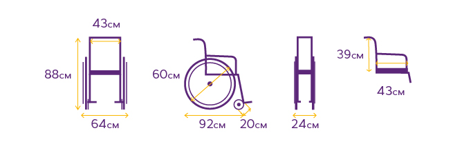 - кресло-коляска комплектуется передними и задними колесами с цельнолитыми шинами