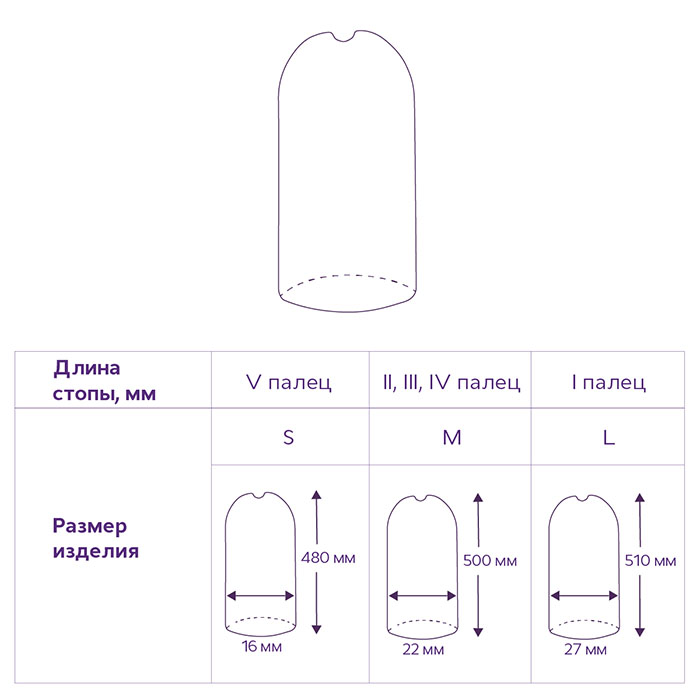 Для подбора изделия необходимо найти размер, соответствующий порядковому номеру пальца в размерной таблице, указанной в описании.