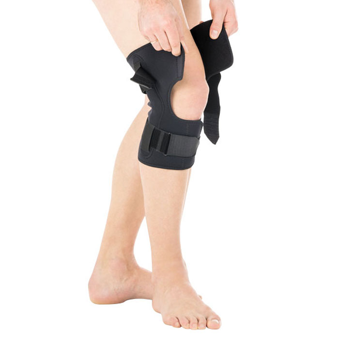 - разъемная конструкция коленного бандажа позволяет максимально эффективно зафиксировать коленный сустав и надколенник при ограниченной подвижности сустава, отеке сустава и при повышенной массе тела