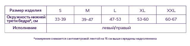 Для подбора размера следует измерить окружность нижней трети бедра на 15 см выше середины надколенника.