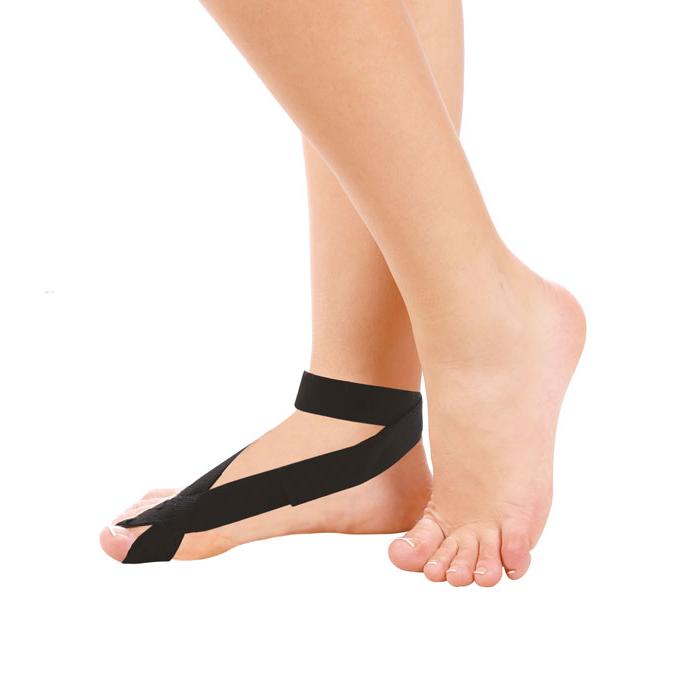 • наденьте петлю на первый палец стопы так, чтобы короткая лента располагалась по внутреннему краю стопы