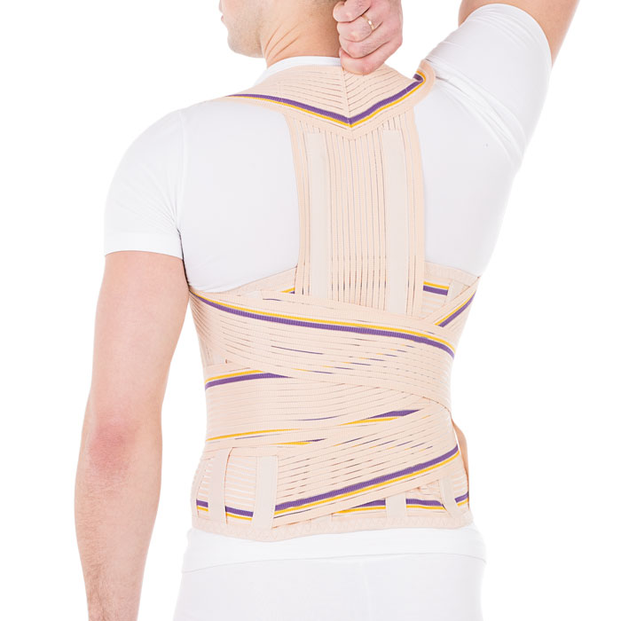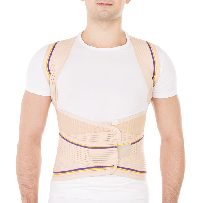 - два пластиковых ребра по передней поверхности поддерживают абдоминальную область и препятствуют скручиванию корректора осанки