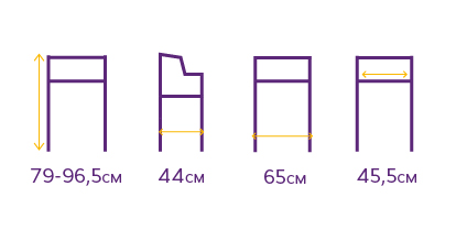 - регулируемая высота от 79 до 96,5 см с шагом 2,5 см