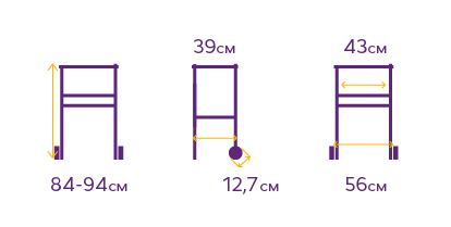 • регулируемая высота от 84 до 94 см с шагом 2,5 см
